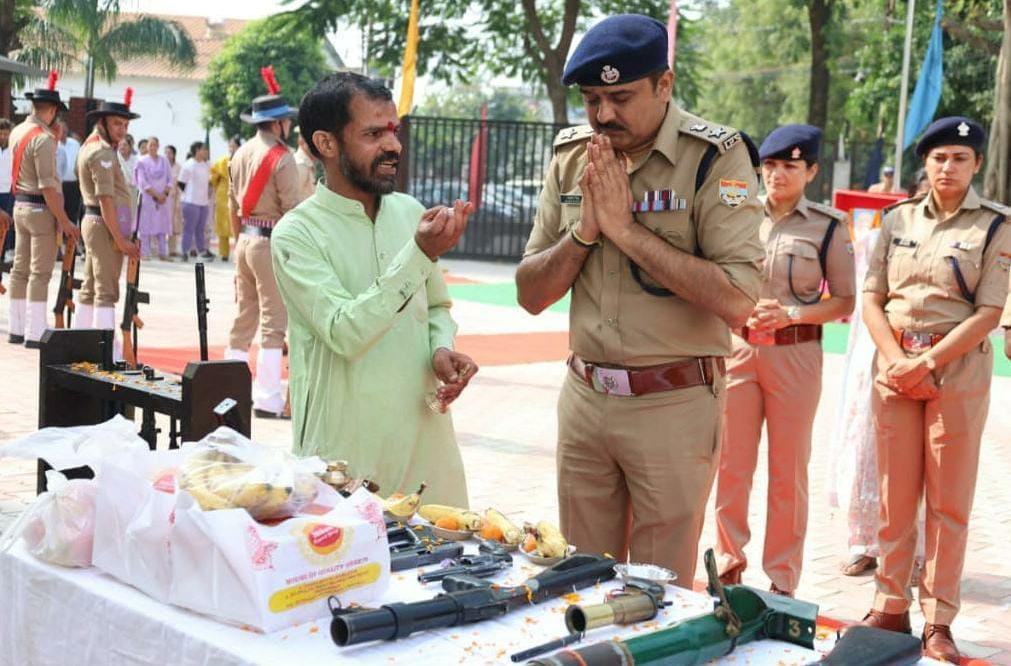 विजयदशमी के पावन पर्व पर SSP सिंह द्वारा पुलिस लाइन में किया शस्त्र पूजन,अश्वशाला में नवनिर्मित सूर्या मन्दिर का भी किया विधिवत उद्घाटन