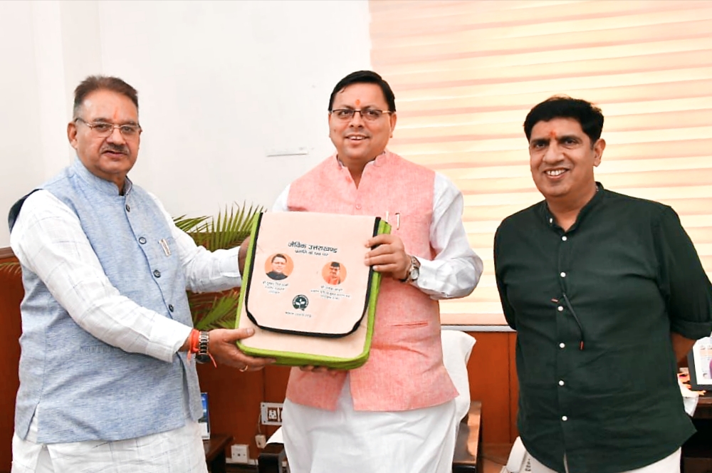 मुख्यमंत्री पुष्कर सिंह धामी और कृषि एवं कृषक कल्याण मंत्री गणेश जोशी ने ‘‘उत्तराखण्ड जैविक उत्पाद परिषद’’ की ओर से निर्मित किए गए जैविक उत्पाद किट का अनावरण किया।