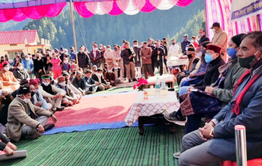 इससे पूर्व 1.50 किमी पैदल चलकर मंगटाड़ ग्राम पंहुचने पर क्षेत्र के खत के सयाणों द्वारा जिलाधिकारी का पारम्परिक टोपी, कोट एवं शाॅल भेंट कर सम्मानित करते हुए कहा कि प्रशासन की इस अच्छी पहल से ग्रामीणों को सरकार की विकास योजनाओं का लाभ मिल रहा है।