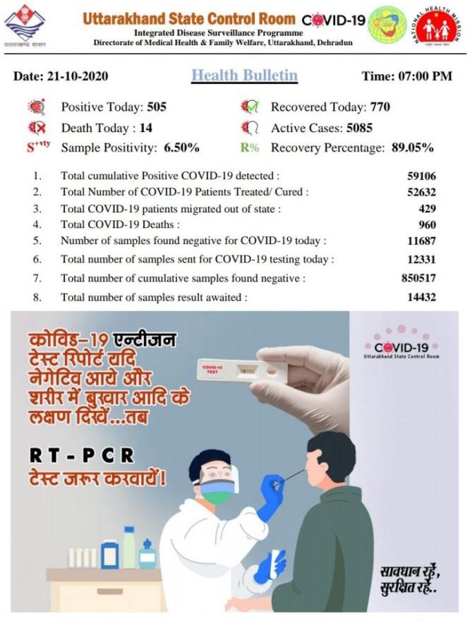 अब तक राज्य में कुल 850517 लोगों की जांच रिपोर्ट निगेटिव आ चुकी है,