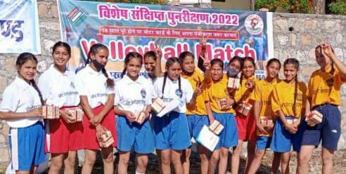 स्वीप के इस कार्यक्रम में बालिकाओं द्वारा वॉलीबॉल मैच के माध्यम से संदेश दिया गया – खेल स्वास्थ्य के लिए जरूरी है तो वोट लोकतंत्र के लिए। बालिकाओं ने 18 वर्ष पूरे होने पर अपना वोटर कार्ड बनाने की भी वोटर पंजीकरण डेस्क से जानकारी ली।