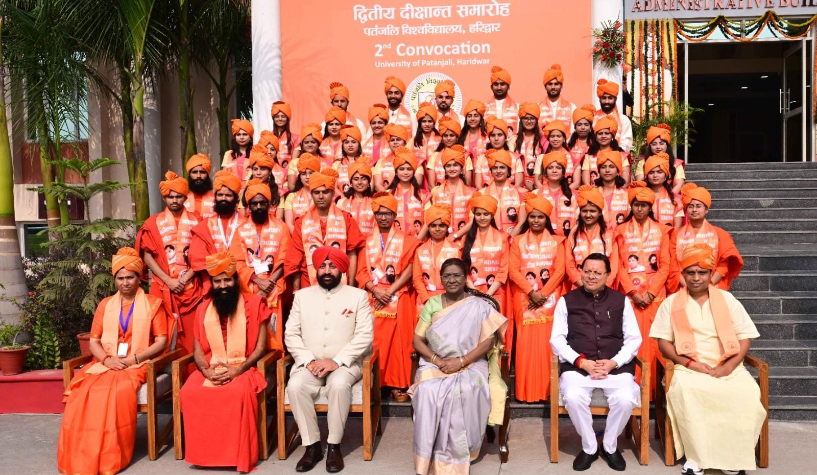 राष्ट्रपति ने कहा कि पतंजलि विश्वविद्यालय महर्षि पतंजलि की तप, साधना और ज्ञान परंपरा को आधुनिक समाज के लिए सुलभ बना रहा है। विश्वविद्यालय योग, आयुर्वेद एवं प्राकृतिक चिकित्सा के क्षेत्र में शिक्षा और अनुसंधान के माध्यम से स्वस्थ भारत के निर्माण में महत्वपूर्ण योगदान दे रहा है। उन्होंने विश्वविद्यालय की भारत-केन्द्रित शिक्षा-दृष्टि की सराहना करते हुए कहा कि इसमें विश्व बंधुत्व की भावना, वैदिक ज्ञान एवं आधुनिक वैज्ञानिक दृष्टिकोण का समन्वय और वैश्विक चुनौतियों के समाधान जैसी विशेषताएँ निहित हैं। उन्होंने विद्यार्थियों से वसुधैव कुटुंबकम् की भावना पर आधारित जीवन-मूल्यों को अपनाने का आह्वान किया।