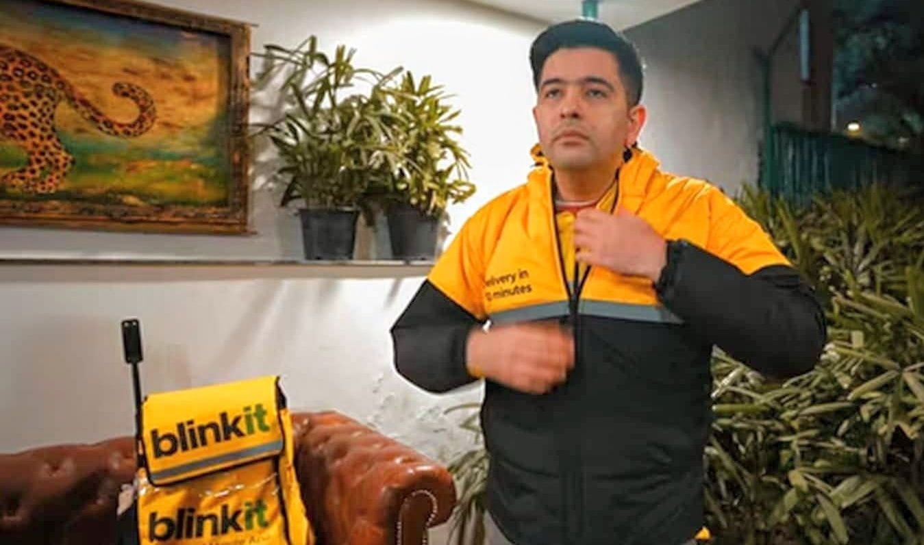 उन्होंने सोमवार को सोशल मीडिया एक्स पर एक वीडियो पोस्ट किया था। इसमें वह खुद ब्लिंकिट डिलीवरी एजेंट के कपड़े पहने हुए नजर आ रहे हैं। उन्होंने अपनी पीठ पर एक बैग रखा हुआ है।