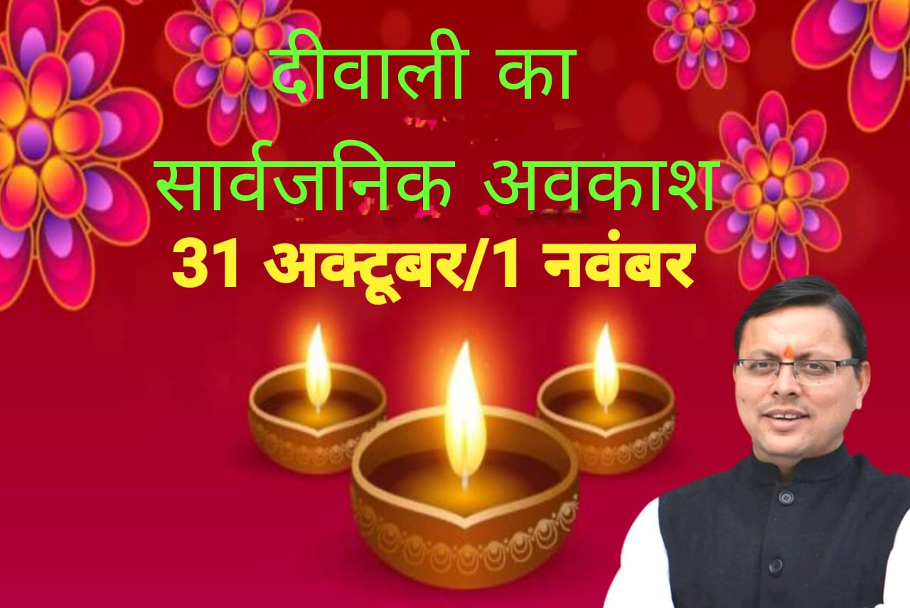 इससे पहले सरकार ने छुट्टी को लेकर चली आ रही असमंजस की स्थिति को दूर किया था। क्योंकि, पहले दिवाली का अवकाश 01 नवंबर तय था। मंगलवार को 01 नवंबर की जगह 31 अक्टूबर को सार्वजनिक अवकाश घोषित किए जाने का आदेश जारी किया था।