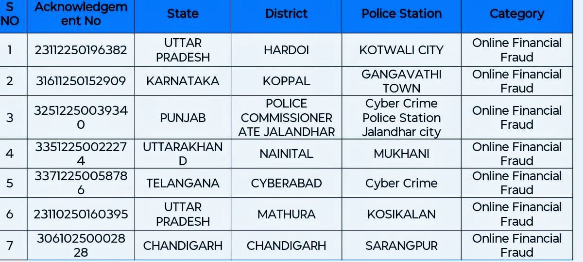 तत्पश्चात प्राप्त डेटा के गहन विश्लेषण से पुलिस टीम द्वारा अभियोग में प्रकाश में आए बैंक खातों तथा मोबाइल नम्बरों का सत्यापन किया गया ।