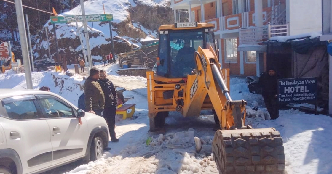 चकराता के ग्रामीण इलाकों की सड़के बर्फबारी के चलते बंद ,जिनको खोलने के लिए जिला प्रशासन की टीम मौके पर पहुंच बर्फ हटाने के काम में जुटी