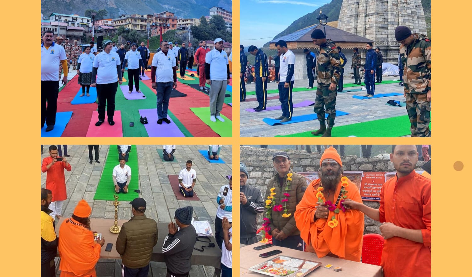 श्री बदरीनाथ मंदिर सि़ंह द्वार के सामने मंदिर के बाह्य परिसर में योग कार्यक्रम आयोजित हुआ जिसमें सभी सेना,आईटीबीपी, जिले के सरकारी विभागों, मंदिर समिति पुलिस प्रशासन, तीर्थपुरोहितों तीर्थयात्री महिला पुरूषों, बच्चों ने भी बढ़-चढ़ कर भाग लिया।