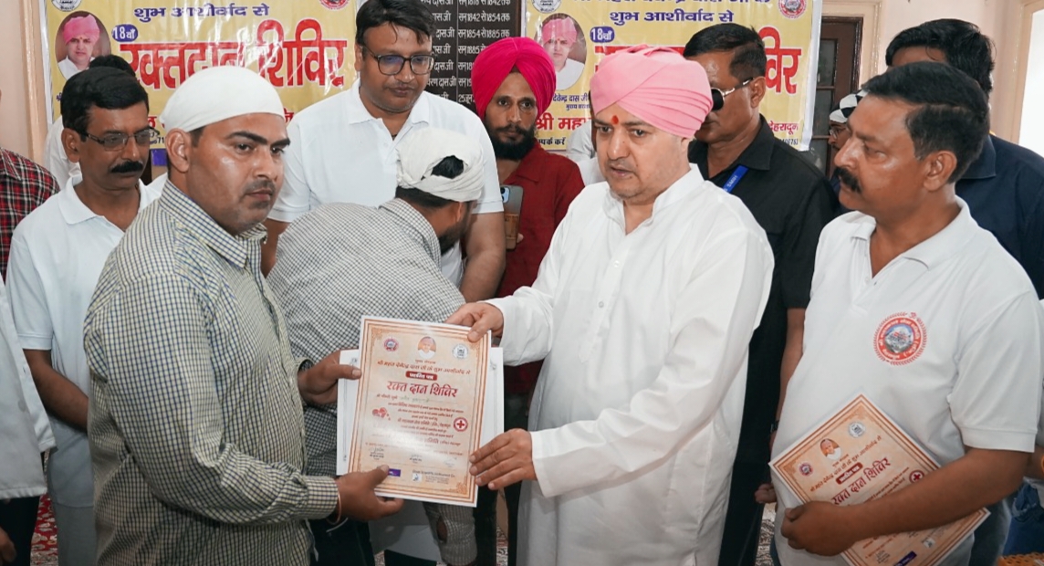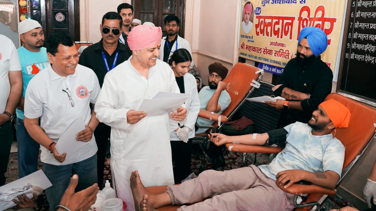 शिविर का शुभारंभ श्री महंत देवेंद्र दास ने दीप प्रज्वलित कर शुभारंभ किया, और उन्होंने रक्तदान के विषय में विस्तार से चर्चा की और रक्तदान दाताओं को प्रशस्ति पत्र देकर सम्मानित किया महाराज के सानिध्य में श्री महाकाल सेवा समिति पिछले 5 वर्षों से लगातार रक्तदान शिविर आयोजित कर रही है, श्री महंत इंद्रेश अस्पताल ब्लड बैंक के तत्वाधान में श्री महाकाल सेवा समिति द्वारा आयोजित 18 वे स्वैच्छिक रक्तदान शिविर में आई हुई संगत ने बढ़-चढ़कर रक्तदान किया, समिति के अध्यक्ष रोशन राणा ने बताया की श्री महंत देवेंद्र दास ने समिति के कार्यों को सराहा और समिति को पुर्ण सहयोग का आश्वासन दिया इस दौरान बालकिशन शर्मा,संजीव गुप्ता, गौरव जैन, आयुष जैन, विशाल तनेजा, हेमराज अरोड़ा जितेंद्र मलिक, राहुल माटा, कृतिका राणा, अनुष्का राणा अरिहंत जैन मौजूद रहे।