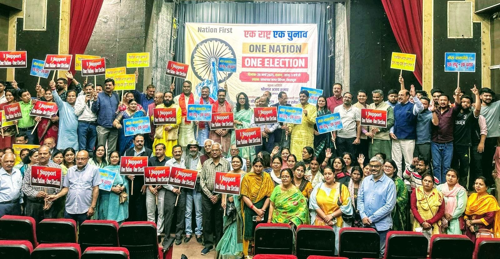 इस मौके पर विभिन्न संगठनों से जुड़े लोगों ने अपने-अपने विचार रखते हुए वक्ताओं ने कहा कि एक देश एक चुनाव पर अमल की दिशा में ठोस कदम उठाते हुए केंद्रीय मंत्रिमंडल ने इससे संबंधित प्रस्ताव को मंजूरी दे दी है। विपक्षी पार्टियां अभी भी इसके खिलाफ हैं, लेकिन सत्ता पक्ष इसे अमल में लाने पर अडिग है। ऐसे में यह देखना दिलचस्प होगा कि संसद में इस पर किस तरह की रस्साकशी होती है।