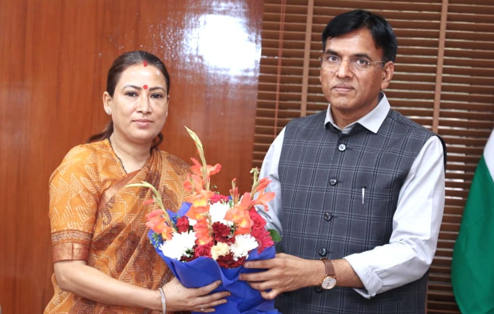 बुधवार को नई दिल्ली में उत्तराखंड की खेल मंत्री श्रीमती रेखा आर्य ने केंद्रीय युवा मामले और खेल मंत्री मनसुख मंडाविया से शिष्टाचार भेंट कर उन्हें अपनी शुभकामनाएं दी ।