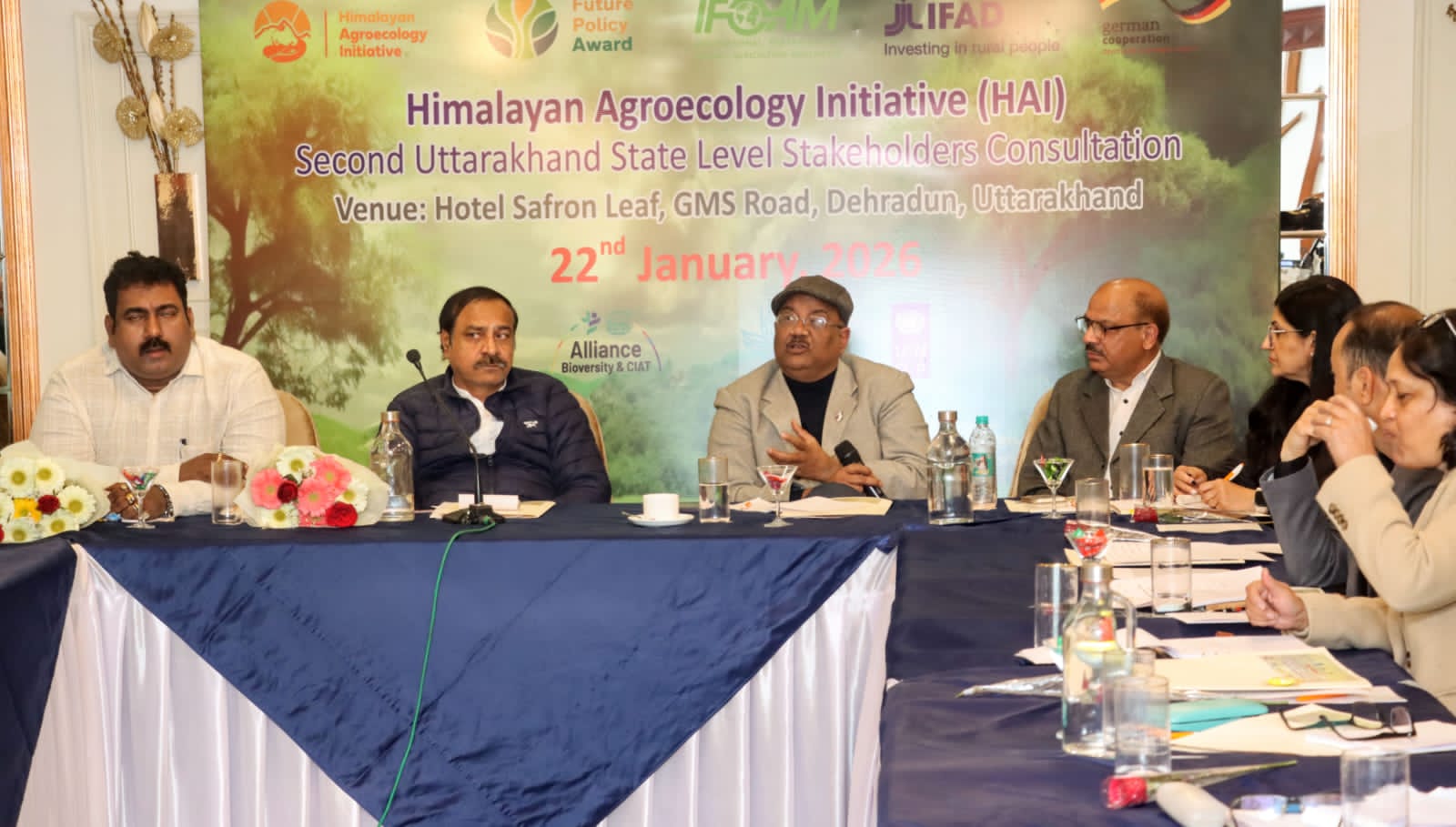 हिमालयी क्षेत्रों में टिकाऊ कृषि को बढ़ावा देने, जैव विविधता संरक्षण, जलवायु परिवर्तन के अनुरूप खेती और किसानों की आजीविका सुदृढ़ करने के उद्देश्य से हिमालयन एग्रोइकोलॉजी इनिशिएटिव (HAI) के तहत उत्तराखंड राज्य स्तरीय द्वितीय हितधारक परामर्श का आयोजन गुरुवार को देहरादून के जीएमएस रोड स्थित होटल सैफ्रन लीफ में किया गया।
