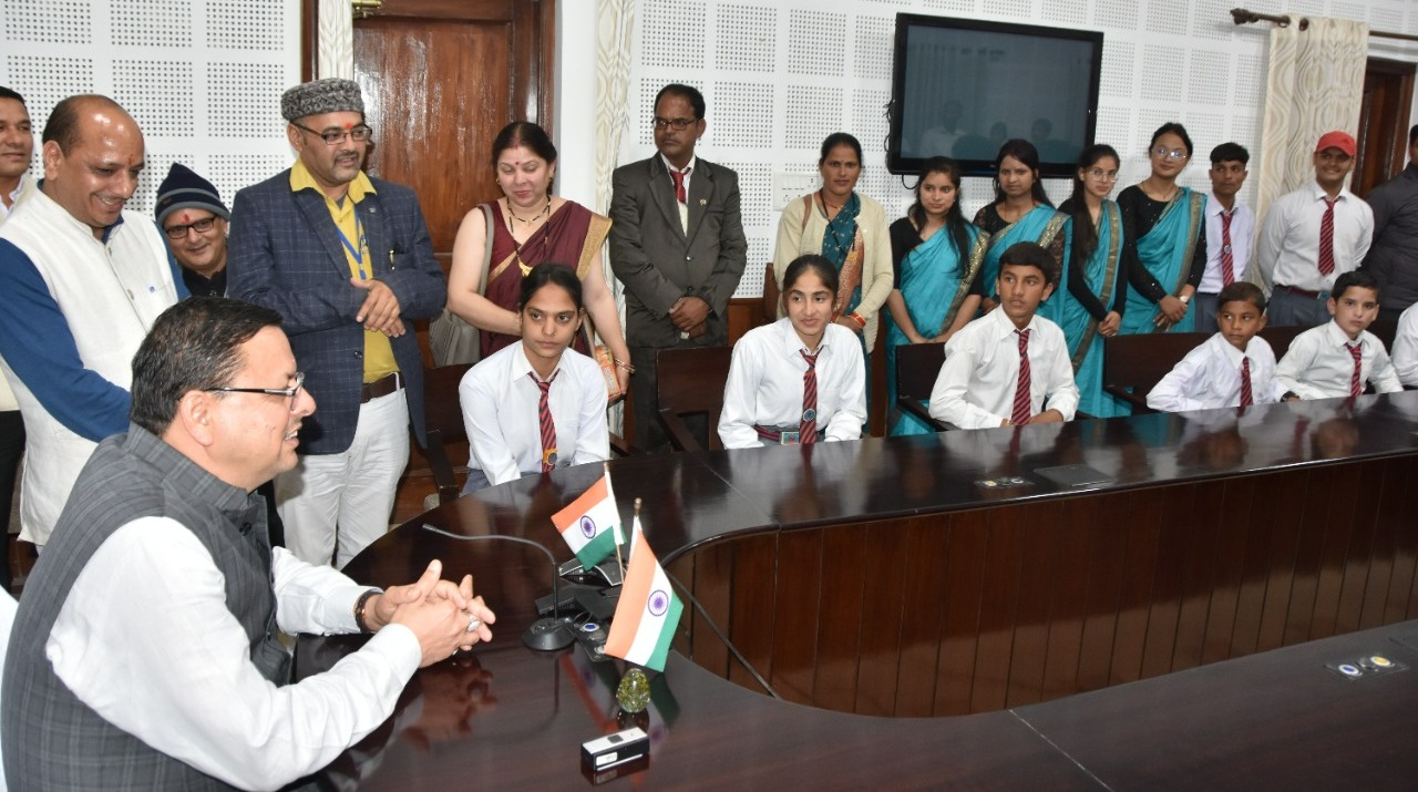 मुख्यमंत्री पुष्कर सिंह धामी से शनिवार को मुख्यमंत्री आवास स्थित केम्प कार्यालय में देहरादून भ्रमण पर आये बाल शिक्षा सदन स्कूल बड़कोट के छात्रों ने भेंट की। मुख्यमंत्री से मिलने आये छात्र मुख्यमंत्री से मिलकर उत्साहित नजर आये।