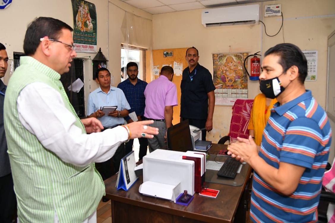 मुख्यमंत्री पुष्कर सिंह धामी ने बुधवार की सुबह राजपुर रोड स्थित आर टी ओ कार्यालय पर छापा मारा।