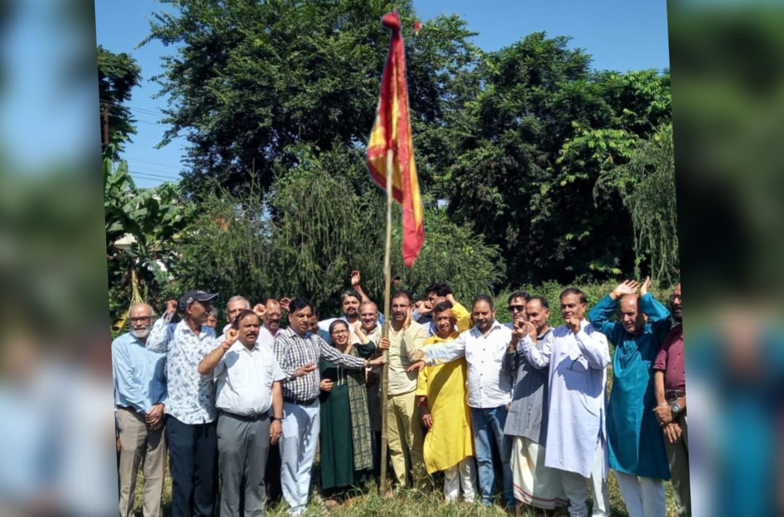 हनुमान ध्वजा स्थापना से पहले पूजा, अर्चना व हवन किया व तत्पश्चात विधि–विधान से गई।