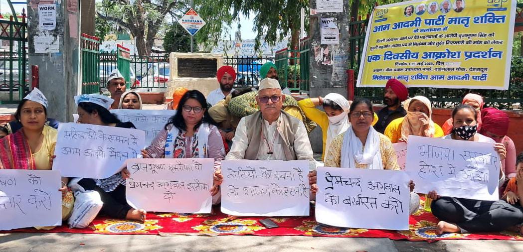 आम आदमी पार्टी ने केन्द्र व राज्य की भाजपा सरकार के खिलाफ दिल्ली में बैठी महिला खिलाड़ी और ऋषिकेश में हुई केबिनेट मंत्री प्रकरण को लेकर धरना देकर किया आक्रोश प्रकट