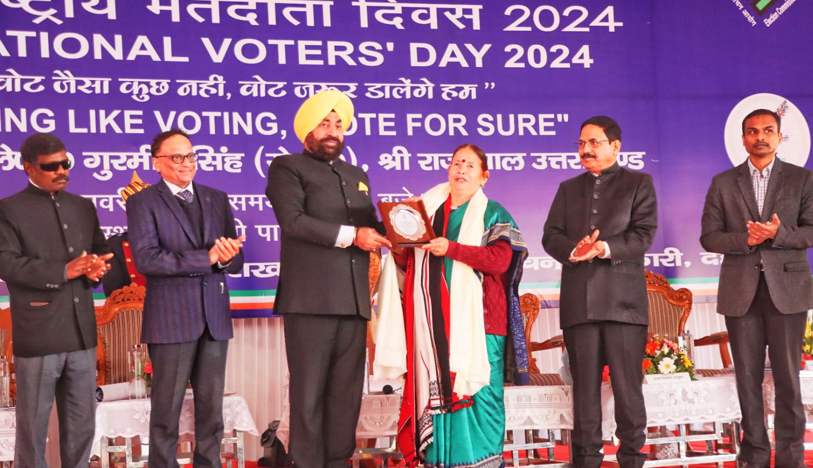 कार्यक्रम में राज्यपाल द्वारा पद्मश्री कल्याण सिंह रावत, पद्मश्री माधुरी बड़थ्वाल, पद्मश्री बसंती बिष्ट, पर्वतारोही ताशी मलिक को सम्मानित किया गया। उन्होंने युवा मतदाताओं को भी उनका प्रथम वोटर आईडी कार्ड देकर सम्मानित किया। कार्यक्रम में मतदान की महत्ता को समझाने के लिए एनसीसी कैडेट और कई विद्यालयों के छात्र- छात्राओं ने सुंदर सांकृतिक कार्यक्रम प्रस्तुत किए।