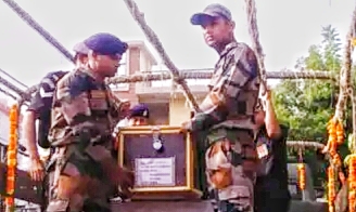 लेह लद्दाख में तैनात लालकुआं निवासी जेसीओ धर्मेंद्र गंगवार का पार्थिव शरीर 3 दिन बाद आज उनके लाल कुआं गांधीनगर स्थित आवास पहुंच गया है । सेना की गाड़ियों में जैसे ही धर्मेंद्र का पार्थिव शरीर लालकुआं पहुंचा तो देश भक्ति नारों के साथ पूरा लालकुआं गुंजायमान हो गया।