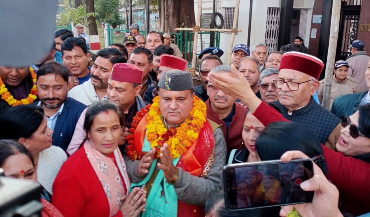 निर्विरोध निर्वाचित होने पर सर्वप्रथम श्री भट्ट ने वरिष्ठ पार्टी पदाधिकारियों के साथ विधानसभा पहुंचकर रिटर्निंग अधिकारी से प्रमाणपत्र प्राप्त किया । इसके उपरांत विधानसभा द्वार पर सैकड़ों महानगर भाजपा कार्यकर्ताओं द्वारा ढोल नगाड़ों और फूलमालाओं के साथ उनका शानदार स्वागत किया गया । वहाँ से कार्यकर्ताओं के जुलूस के साथ उन्होंने कचहरी स्थित शहीद स्मारक पहुंचकर शहीदों को नमन किया । जिसके बाद भाजपा मुख्यालय पहुंचने पर पार्टी पदाधिकारियों एवं कार्यकर्ताओं द्वारा उनके समर्थन मे आतिशबाजी और नारों के साथ प्रदेश अध्यक्ष का अभिवादन किया । इस दौरान बड़ी संख्या में मातृ शक्ति ने उनका स्वागत कर अपना आशीर्वाद दिया ।