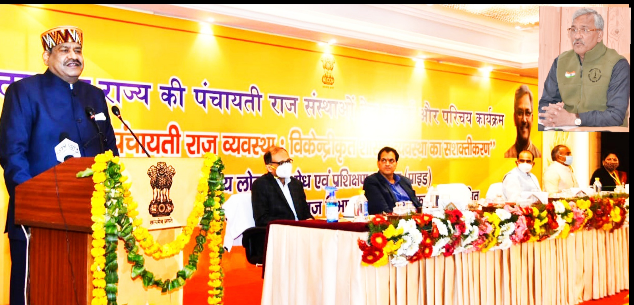 मुख्यमंत्री त्रिवेन्द्र सिंह रावत ने कार्यक्रम में वर्चुअल प्रतिभाग करते हुए कहा कि राज्य में ‘‘पंचायतीराज व्यवस्था विकेन्द्रीकृत शासन व्यवस्था का सशक्तीकरण’’ विषय पर सम्मेलन होना हमारे लिये गर्व की बात है। भारत आज दुनिया के मजबूत लोकतंत्र के रूप में खड़ा है। इस मजबूती के लिए पंचायतों की भी महत्वपूर्ण भूमिका है। गांवों के विकास के बगैर शहरों का विकास नहीं हो सकता है। विकास के लिए गांव और शहर एक दूसरे से पारस्परिक रूप से जुड़े हैं। ग्रामीण अर्थव्यवस्था की मजबूती के लिए विकास का मॉडल भ्रष्टाचार मुक्त होना जरूरी है। ग्रामीण विकास के लिए स्थानीय उत्पादों, कच्चे माल एवं प्राकृतिक संसाधनों को सदुपयोग होना जरूरी है। उत्तराखण्ड में लगभग 16 हजार गांव हैं। उनकी आजीविका में सुधार के लिए लगातार प्रयास किये जा रहे हैं। राज्य में रूरल ग्रोथ सेंटर बनाये जा रहे हैं। अलग-अलग उत्पादों पर आधारित 107 ग्रोथ सेंटर शुरू किये गये हैं। पिरूल की पत्तियों से बिजली बनाने का कार्य राज्य में शुरू हुआ है। पिरूल की पत्तियों से ब्रेकेट्स बनाने का कार्य हो रहा है। पिरूल से ब्रेकेट्स बनाने के कार्य से इससे 40 हजार लोगों को रोजगार मिल सकता है। इन्वेस्टर समिट के दौरान में पर्वतीय क्षेत्रों 40 हजार करोड़ के इन्वेस्टमेंट के लिए एमओयू हस्ताक्षरित किये गये। मुख्यमंत्री सोलर स्वरोजगार योजना के तहत 25-25 किलोवाट तक की 10 हजार योजनाएं स्वीकृत की हैं। राज्य सरकार की ये योजनाएं पंचायतों को सशक्त करने में महत्वपूर्ण भूमिका निभाएंगी।