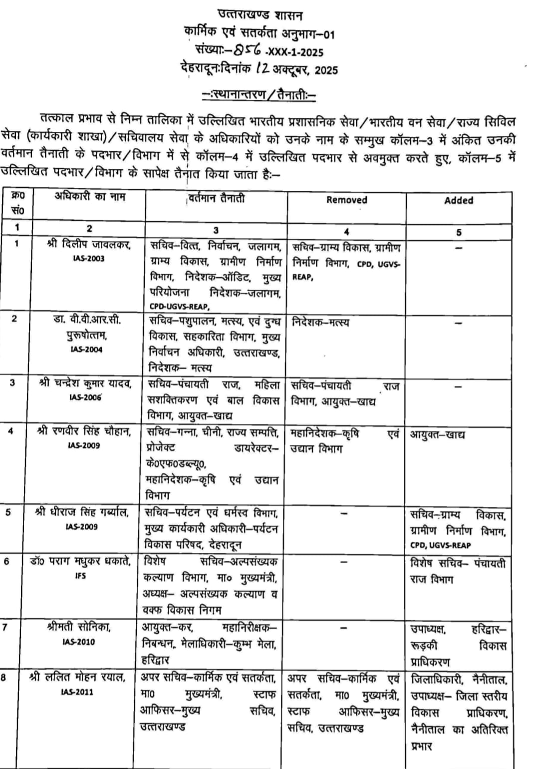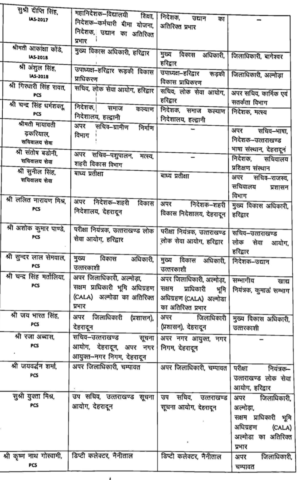 👉🏽अपर जिलाधिकारी प्रशासन देहरादून जय भारत सिंह को मुख्य विकास अधिकारी उत्तरकाशी,