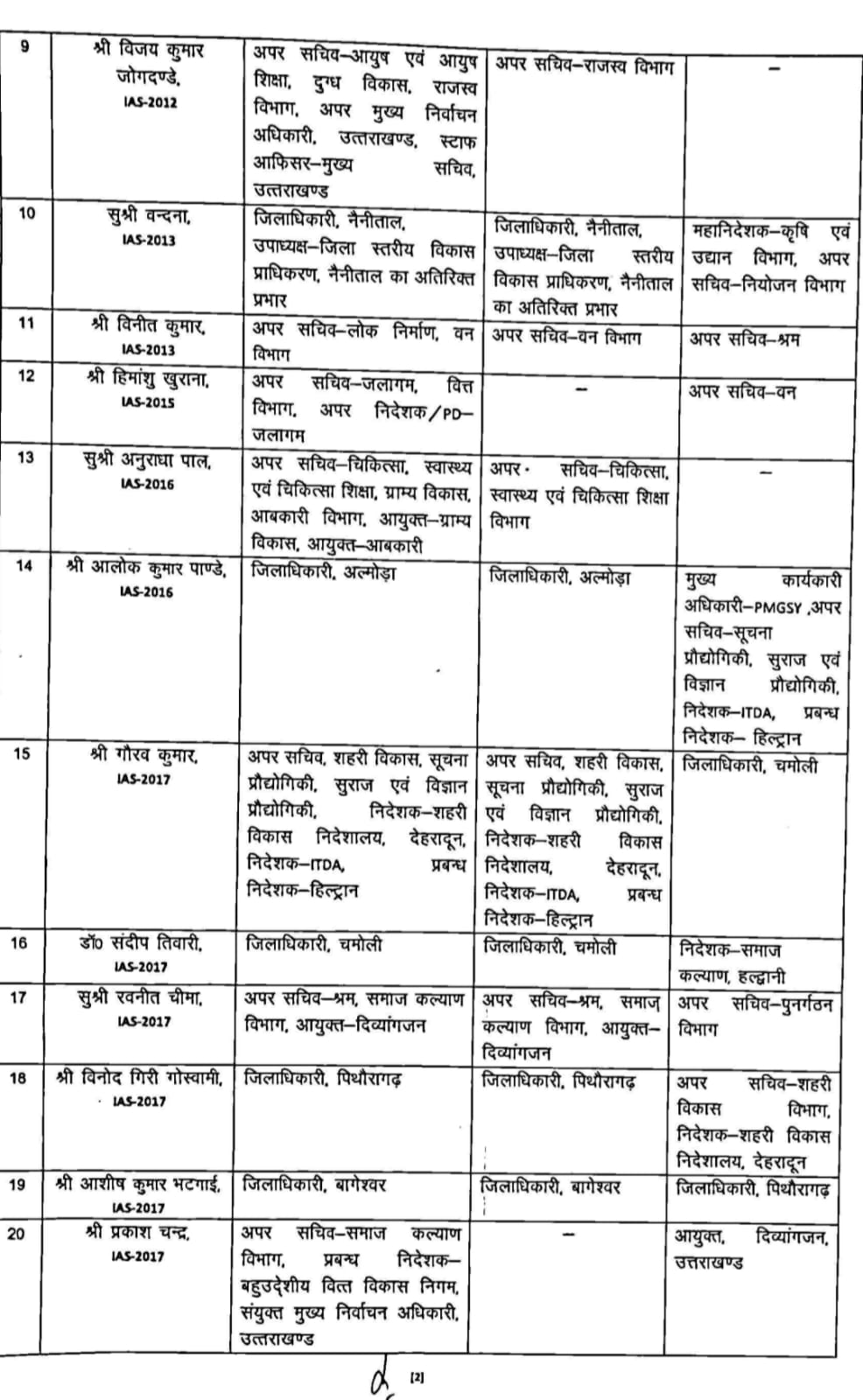 👉🏽जिलाधिकारी नैनीताल वंदना को हटाकर उन्हें महानिदेशक कृषि एवं उद्यान विभाग व अपर सचिव नियोजन का कार्यभार दिया गया।