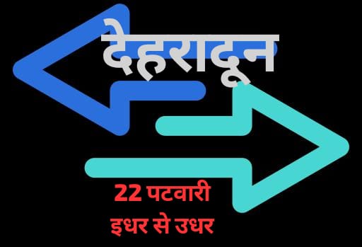 देहरादून जिले में शासन ने किए 22 लेखपाल / पटवारियो के ट्रांसफर,दून समेत विकासनगर,ऋषिकेश,कालसी चकराता भी शामिल