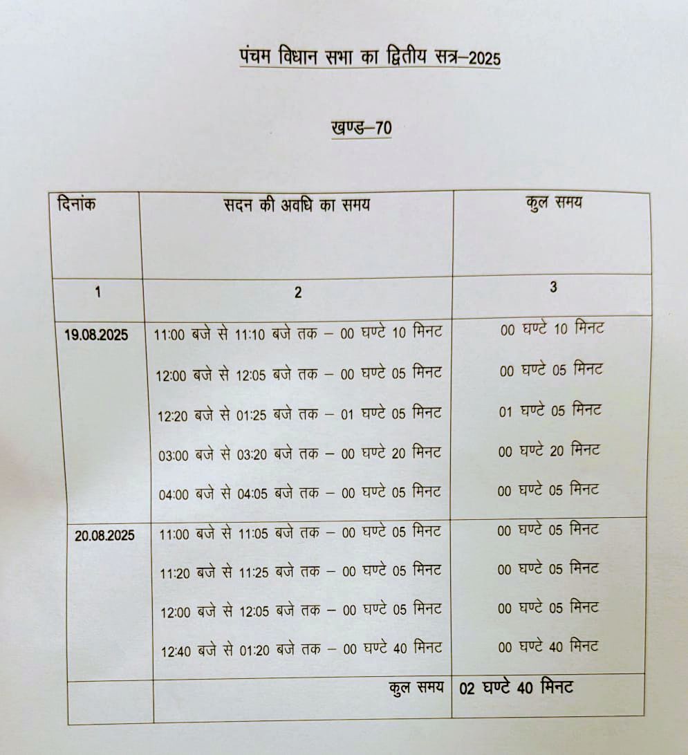 प्राप्त हुई जानकारी के अनुसार सदन दो दिनों में कुल 2 घंटे 40 मिनट ही चल पाया।