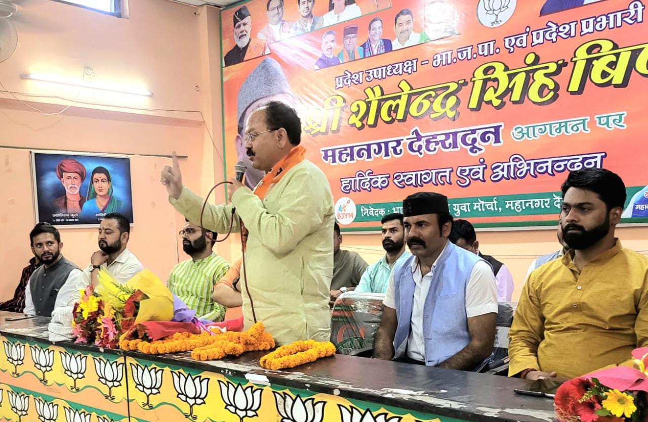 बुधवार को भारतीय जनता युवा मोर्चा महानगर देहरादून द्वारा नव नियुक्त प्रदेश प्रभारी युवा मोर्चा एवं प्रदेश उपाध्यक्ष भाजपा शैलेन्द्र सिंह बिष्ट का प्रथम बार महानगर कार्यालय आगमन पर युवा मोर्चा द्वारा भव्य एवं जोरदार स्वागत किया गया इस अवसर पर प्रदेश प्रभारी शैलेन्द्र बिष्ट ने अपनी छात्र राजनीति के समय के संघर्ष को युवाओ के साथ साजा किया और युवा मोर्चा के कार्यकर्ताओं से आव्हान किया कि केंद्र एवं प्रदेश सरकार की ज़न कल्याणकारी योजनाओं को ज़न ज़न तक पहुचाने का काम युवा मोर्चा करेगा इस अवसर पर प्रदेश मंत्री आदित्य चौहान ने युवाओ को मिशन 2024 मैं अभी से जुट जाने को कहा।