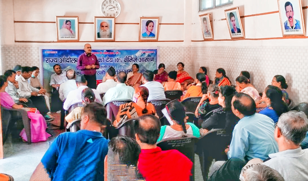 बैठक का संचालन डी एस गुसाई व अध्यक्षता जगमोहन सिंह नेगी ने की। बैठक में तय किया गया कि संगठन अगले 15/20 दिनो में जल्द शासन में गृह सचिव या मुख्य सचिव से मिलकर राज्य आंदोलनकारियों के 10% क्षेतीज आरक्षण व जारी शासनादेश पर कोई क्रियान्वन न होने पर अवगत कराएगा। साथ ही मुख्यमंत्री द्वारा घोषणाओं के शासनादेश को लागू कराने हेतु चर्चा होगी।
