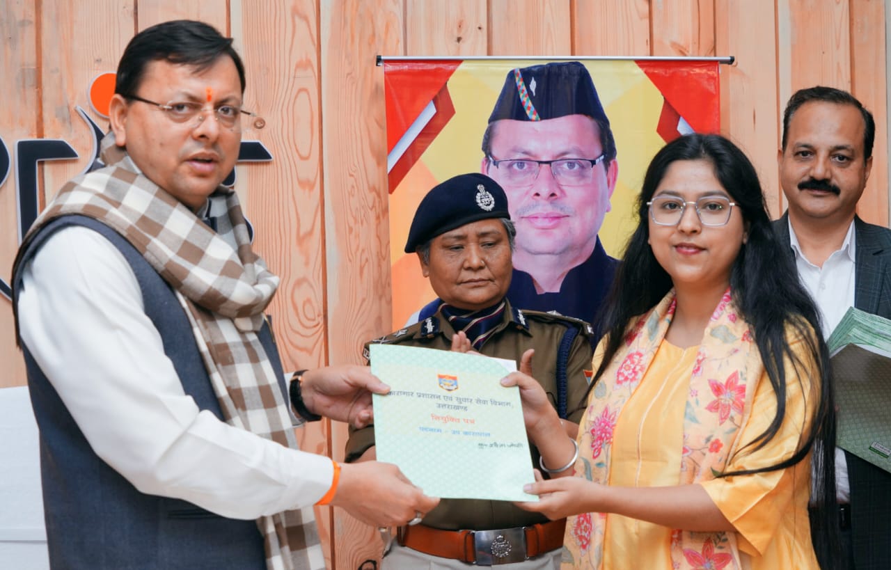 देहरादून मुख्यमंत्री पुष्कर सिंह धामी ने शनिवार को मुख्यमंत्री आवास परिसर में कारागार प्रशासन एवं सुधार सेवा विभाग के अंतर्गत लोक सेवा आयोग द्वारा चयनित 27 डिप्टी जेलरों तथा 285 बंदी रक्षकों को नियुक्ति -पत्र वितरित किये। इस प्रकार आज कुल 312 अभ्यर्थियों को नियुक्ति -पत्र प्रदान किये गये l