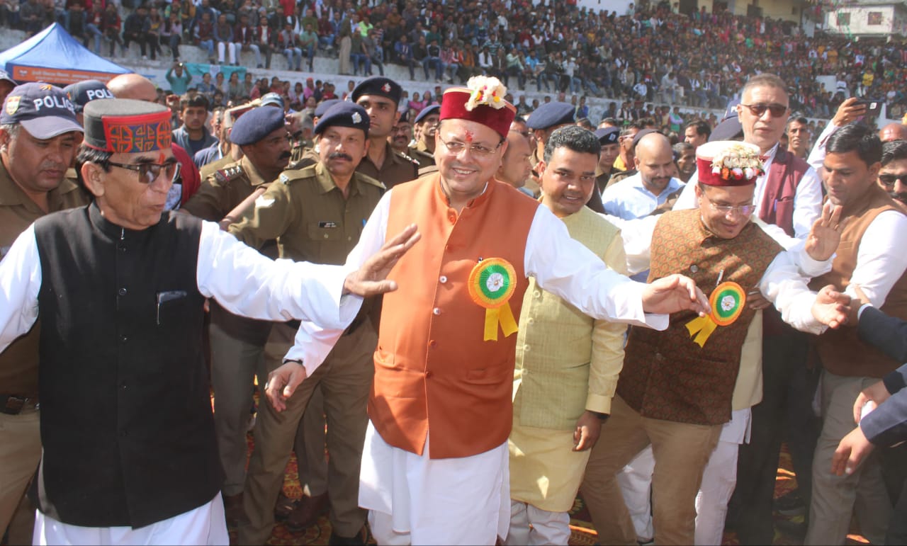मुख्यमंत्री पुष्कर सिंह धामी आज यमुनाघाटी क्रीड़ा एवं सांस्कृतिक विकास समारोह में प्रतिभाग करने डामटा पहॅुंचे थे। सूरत स्टेडियम डामटा कांडी में आयोजित इस समारोह में हजारों की संख्या में जुटे स्थानीय लोगों ने पारंपरिक ढंग से मुख्यमंत्री का भव्य स्वागत किया। मुख्यमंत्री ने मेले में जुटे ग्रामीणों के साथ रवांई-जौनसार-जौनपुर क्षेत्र के पारंपरिक लोक नृत्य में भी हिस्सा लिया।