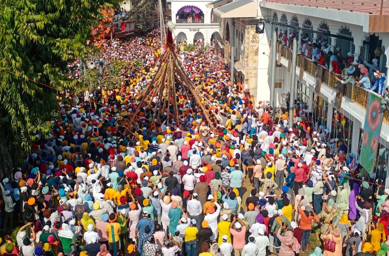 झंडे जी पर दर्शनी गिलाफ चढ़ाने के बाद लगभग 3.30 बजे अपराह्न संगतों ने फूलों की वर्षा के बीच आरोहण किया गया। इस बार 90 फ़ीट के झंडे को चढ़ाया गया है। महंत देवेंद्र दास महाराज के इशारो से चढ़ते झंडे की शोभा अलग ही थी। जयकारों के बीच महाराज ने संगत को निर्देशित किया। जिससे कुछ मिनटों में ही झंडे जी अपने स्थान पर पहुंच खड़े हो गए। उसके बाद आई बाज़ ने माहौल में धार्मिकता को और बढ़ा दिया। सँगते परसो सेकनगर परिक्रमा के।बाद अपने गंतव्यों को महाराज के प्रवचन के बाद रवाना होंगी।