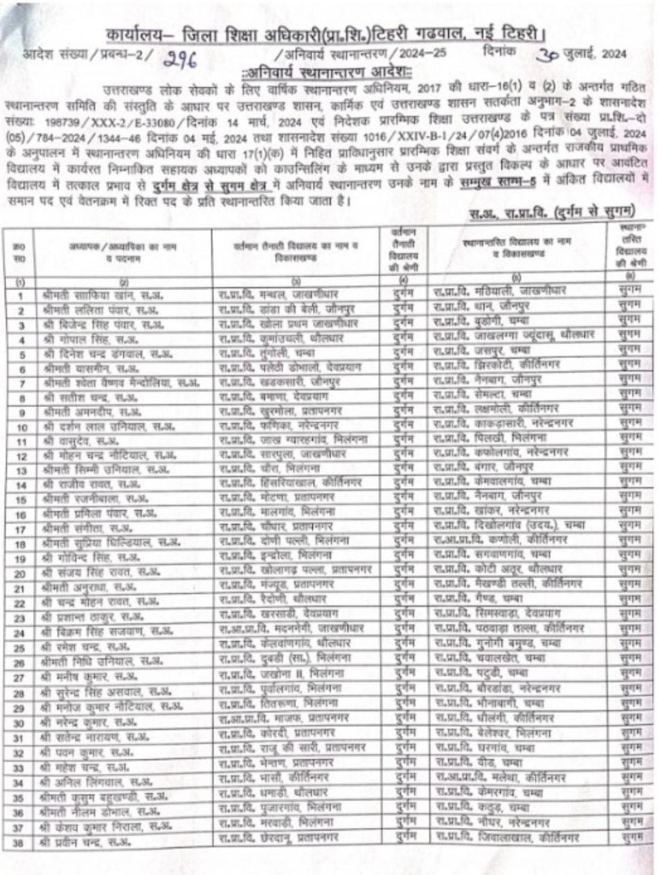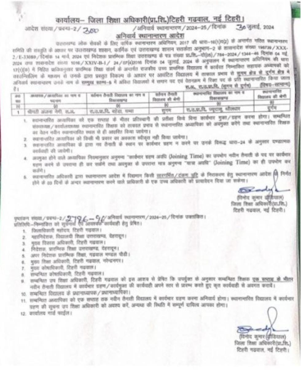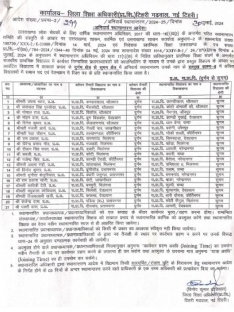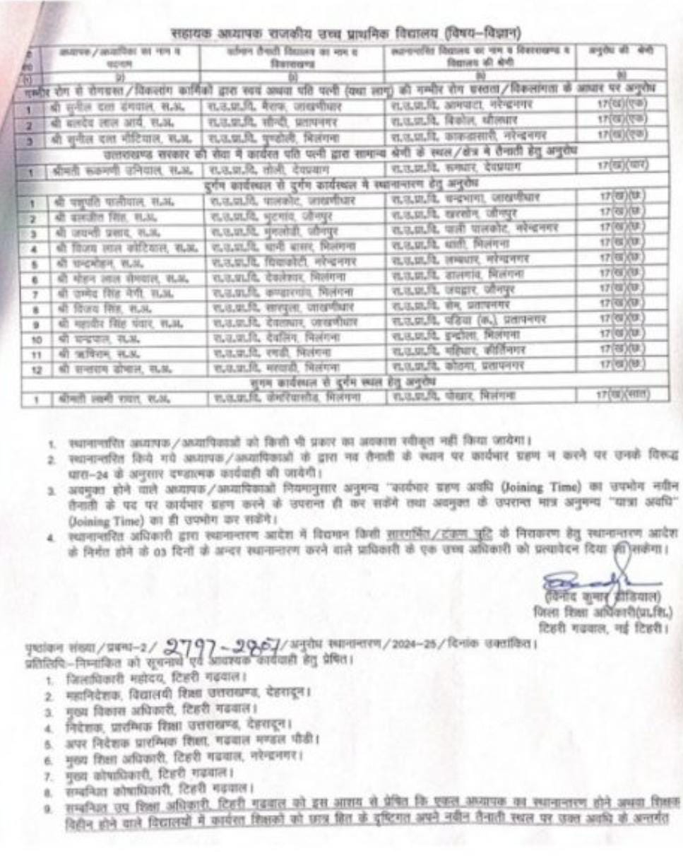 उत्तराखंड शिक्षा विभाग में हुए बंपर तबादले,प्रधानाचार्य,प्रधानाध्यापक, सहायक अध्यापक,अध्यापको के हुए तबादलों की बंपर लिस्ट..