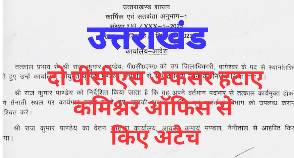 दोनों पीसीएस अफसरों को तत्काल प्रभाव से कुमाऊं कमिश्नर के दफ्तर से अटैच कर दिया है।