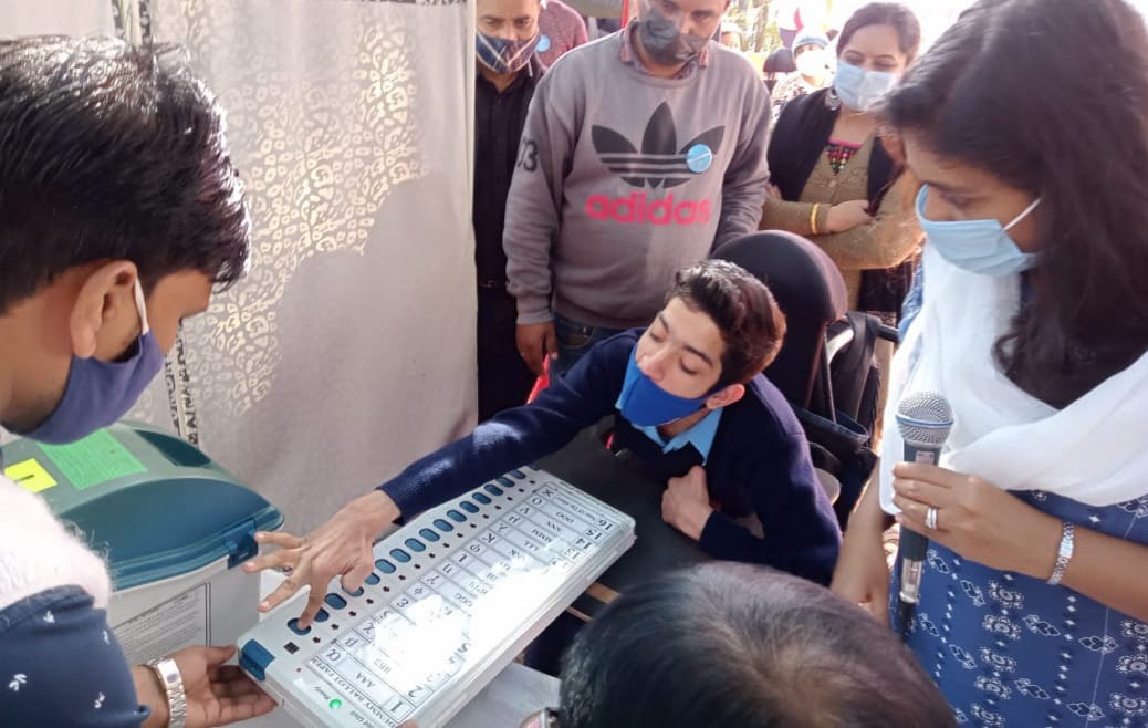 कार्यक्रम में उपस्थित दिव्यांगों को निर्वाचन के विषय में बताया गया। विशेष तौर पर हेल्पलाइन टोल फ्री नंबर-1950 आदि की जानकारी दी गई। EVM मशीन का प्रदर्शन कर वोट देने की संपूर्ण प्रक्रिया के बारे में व्यवहारिक रूप से समझाया गया तथा मॉक पोल का भी आयोजन किया गया। उपस्थित दिव्यांगजनों से प्रश्न पूछकर जानकारी देते हुए सभी से वोट देने की अपील की गई। म्यूजिकल चेयर खेल के माध्यम से दिव्यांगजनों को मतदान के लाभ समझाये गये। शिविर में Pwd मोबाइल एप के द्वारा 27 मतदाता पंजीकरण किये गये।