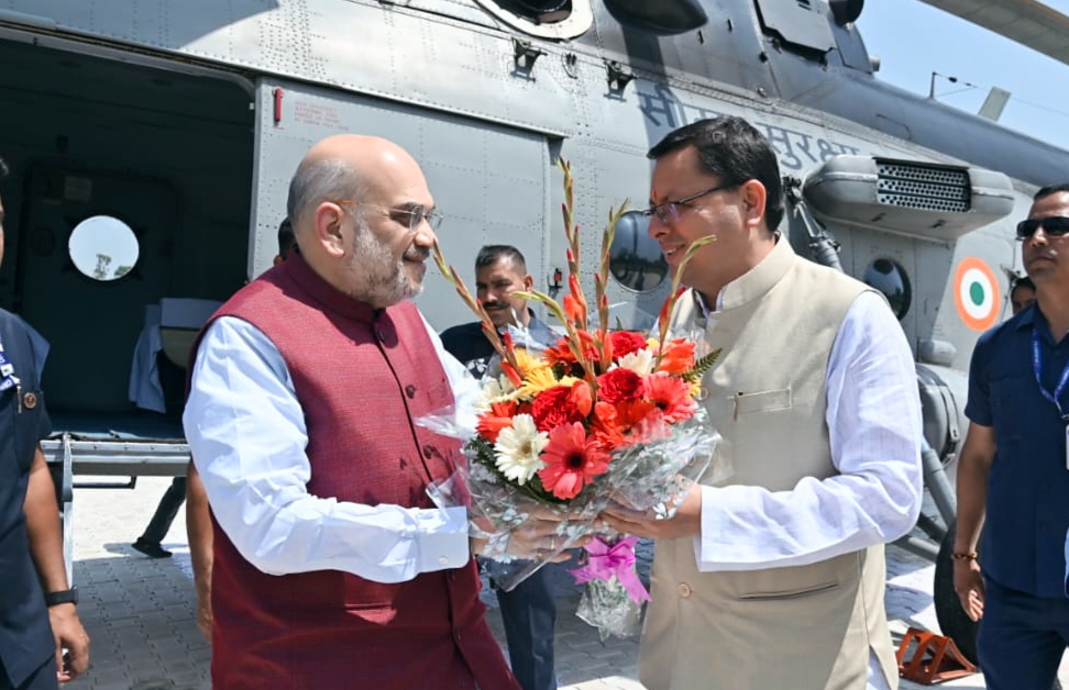 केंद्रीय गृह एवं सहकारिता मंत्री अमित शाह के उत्तराखण्ड आगमन पर मुख्यमंत्री पुष्कर सिंह धामी, प्रदेश अध्यक्ष महेंद्र भट्ट समेत अन्य ने पुष्प गुच्छ भेंट कर स्वागत किया।
