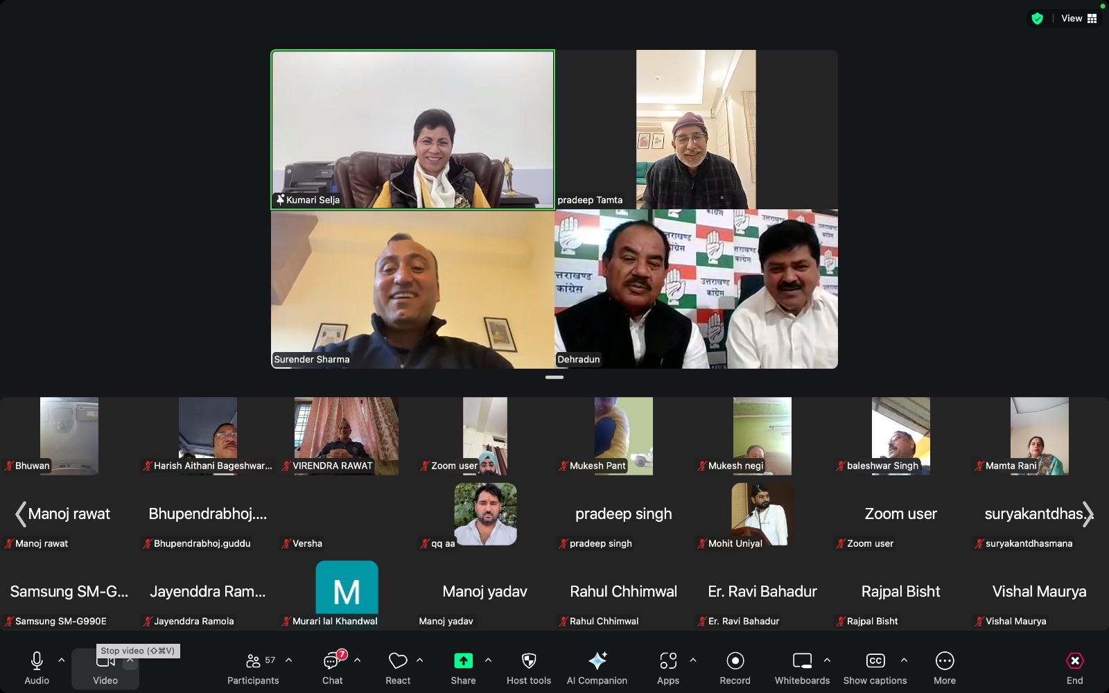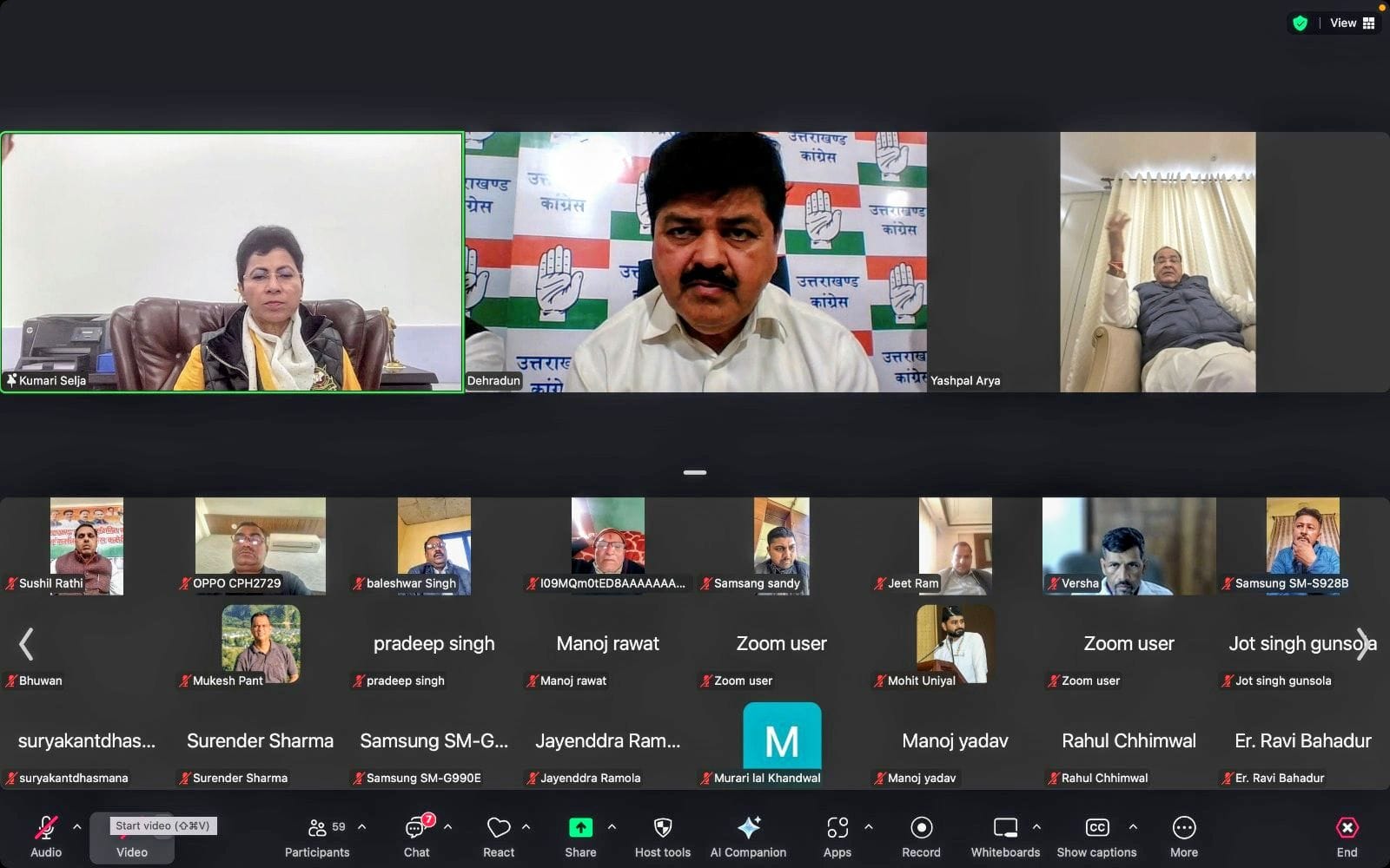 बैठक की अध्यक्षता उत्तराखंड प्रदेश कांग्रेस प्रभारी कुमारी शैलजा द्वारा की गई।