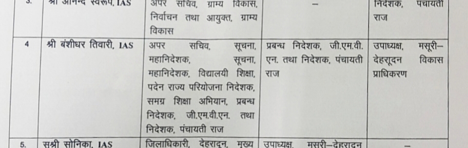 उत्तराखंड शासन ने आज 7 आईएएस, 6 पीसीएस और एक वित्त संवर्ग के अधिकारी का तबादला किया है।