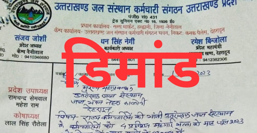 उत्तराखंड जल संस्थान कर्मचारी संगठन के प्रदेश महामंत्री रमेश बिन्जोला द्वारा 17 जून को मुख्य महाप्रबंधक एवं वित्त निदेशक को पत्र प्रेषित किया गया है।