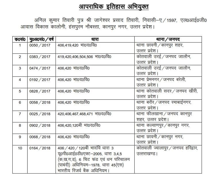 उक्त प्रकरण में थाना कोतवाली ज्वालापुर जनपद हरिद्वार में मु.अ.सं. 164/2018, धारा 406/420 आईपीसी पंजीकृत है, जिसकी विवेचना EOW, सीआईडी सेक्टर देहरादून द्वारा की जा रही है।
