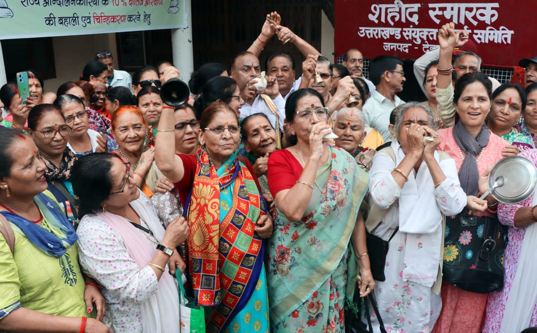 आंदोलनकारियो ने 10 % क्षैतिज आरक्षण की बहाली और चिन्हीकरण की प्रक्रिया दोबारा शुरू करने की माँग को लेकर संयुक्त मंच के पूर्व घोषित कार्यक्रम के तहत आज शहीद स्मारक, देहरादून में किया शंख थाली बजाकर प्रदर्शन और डी एम कार्यालय तक किया मार्च।